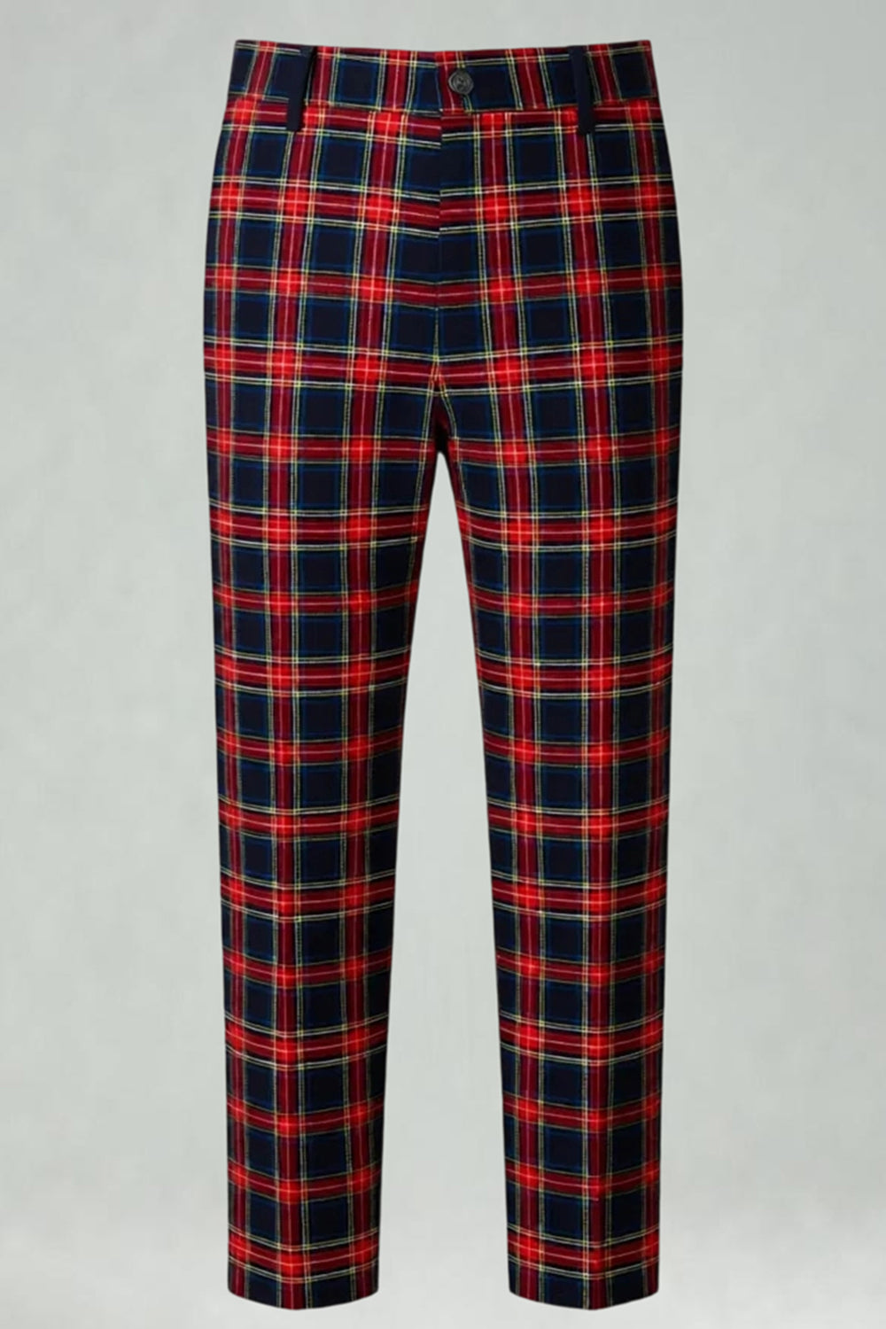 Black Red Grid Peak Lapel Double Breasted 2 Piece Men's Prom Suits