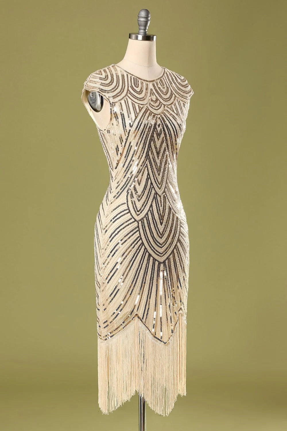 Gatsby Gold Glitter Fringe Roaring 1920s Dress
