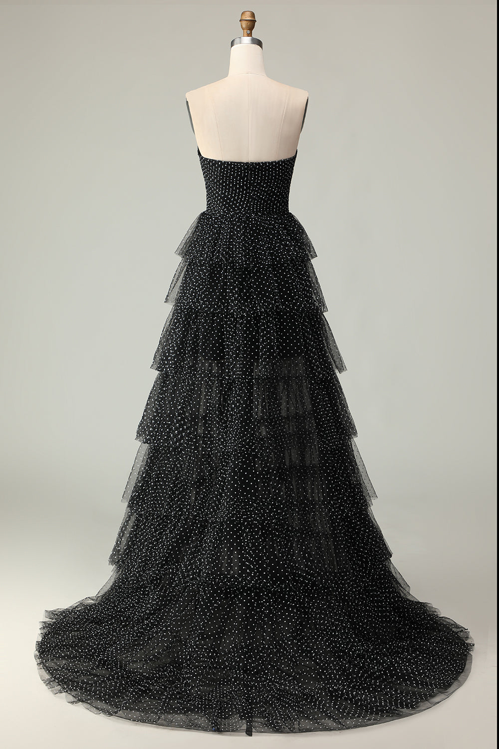Light Green Strapless A Line Polka Dots Tiered Ruffle Bridesmaid Dress with Slit