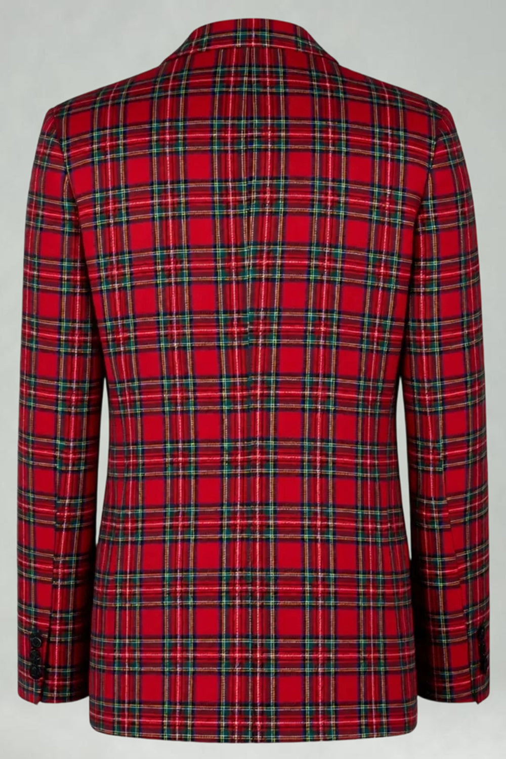Red Black Plaid Notched Lapel 2 Piece Men's Prom Suits