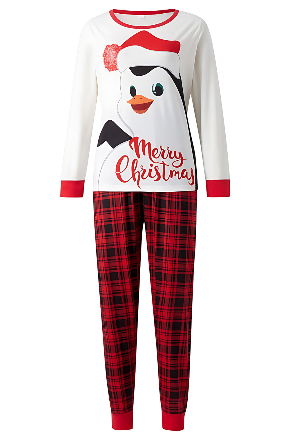 Red Printed Plaid Long Sleeve Christmas Family Matching Pajamas Set