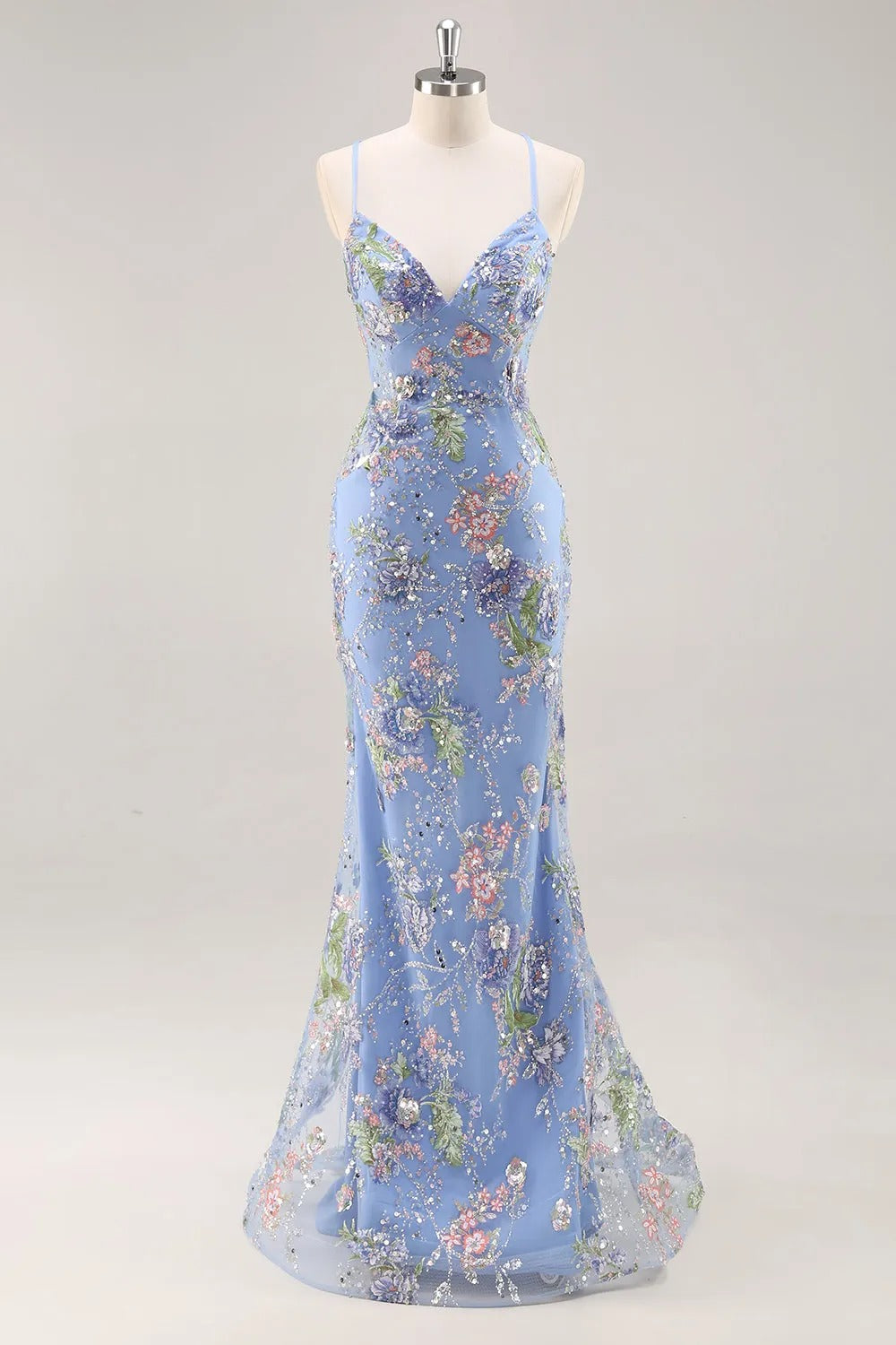 Feature: Embody a vision of dark romance and dramatic glamour in this Sparkly Black Sequins Long Formal Evening Dress. The dress features a meticulously crafted mermaid silhouette, designed to hug your curves before elegantly flaring at the knee for a show-stopping effect. Delicate spaghetti straps lead to a lace-up back, offering an adjustable fit and a touch of alluring sophistication. The luxurious black fabric serves as a captivating canvas, entirely covered in shimmering sequins and adorned with intricate floral that add texture and an artistic, garden-inspired elegance. From the structured bodice to the sweeping train, every detail is designed to captivate. This is the ultimate statement piece for a black-tie gala, a formal ball, or any evening where you are destined to command the room with timeless, mesmerizing beauty.