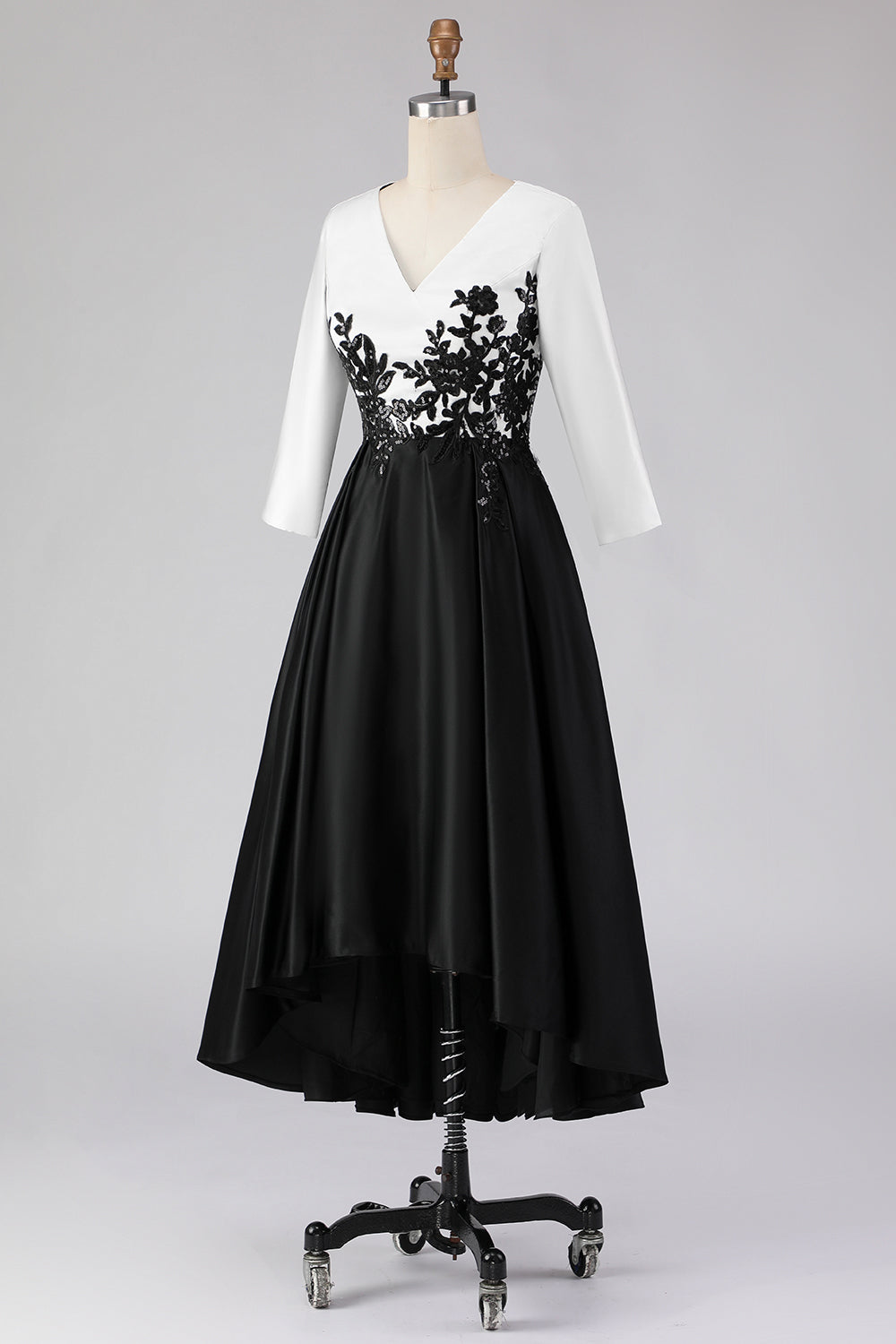 Black and White High Low A Line Mother of the Bride Dress wth Appliques