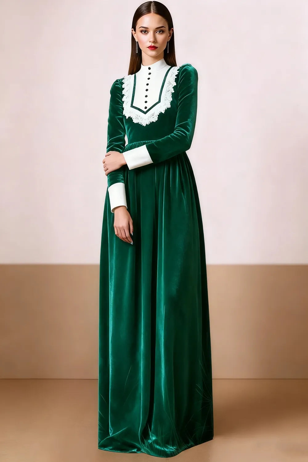 Black and White Velvet A-Line High Neck Long Formal Dress