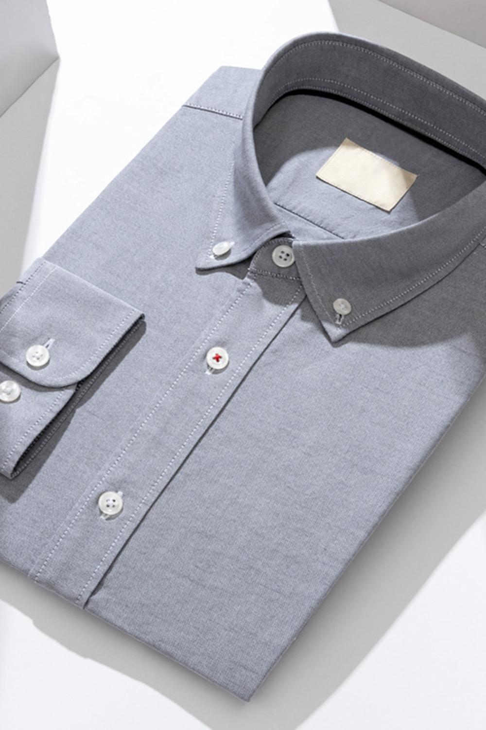 Blue Grey Slim Fit Long Sleeves Solid Men's Suits Shirt