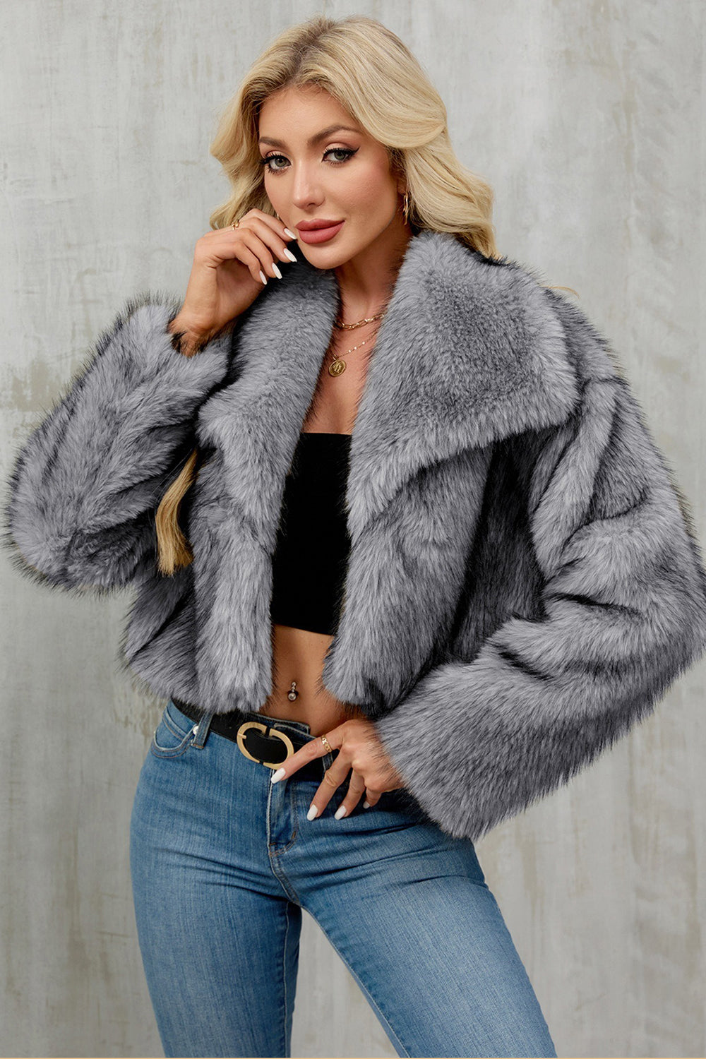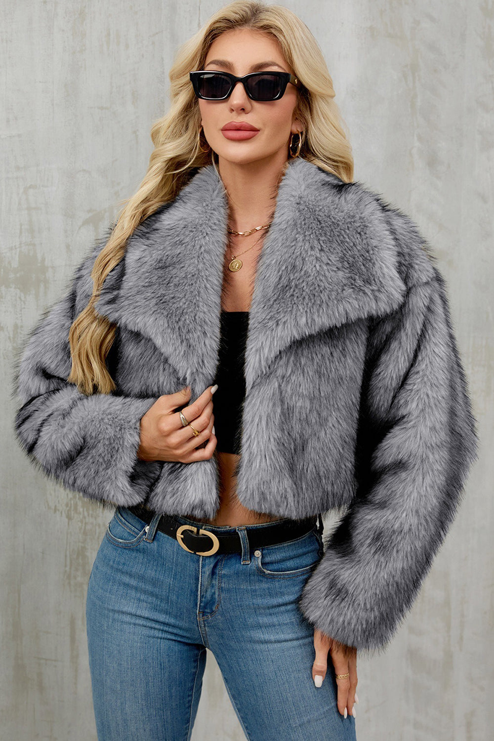 Brown Faux Fur Shawl Lapel Women Short Winter Coat