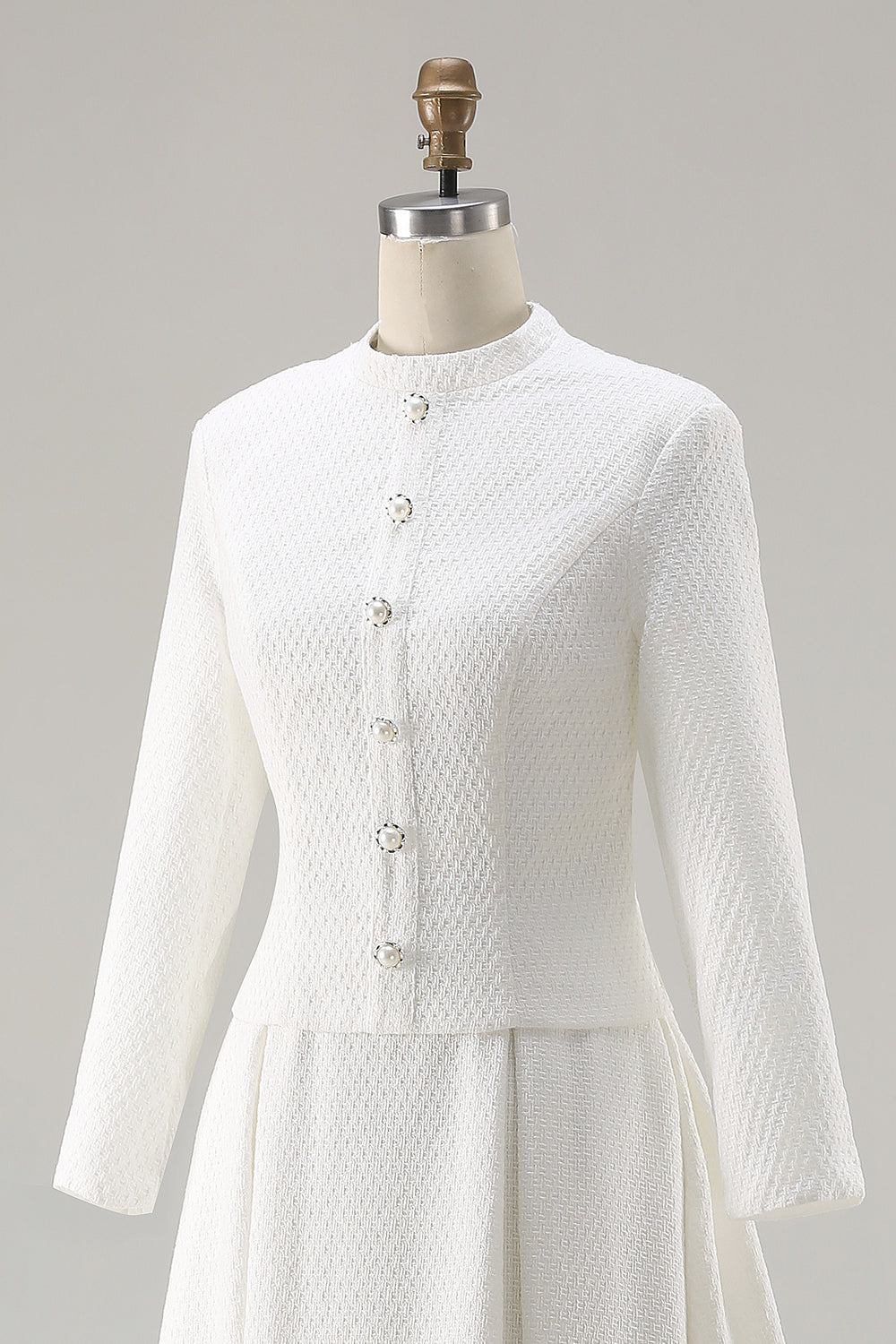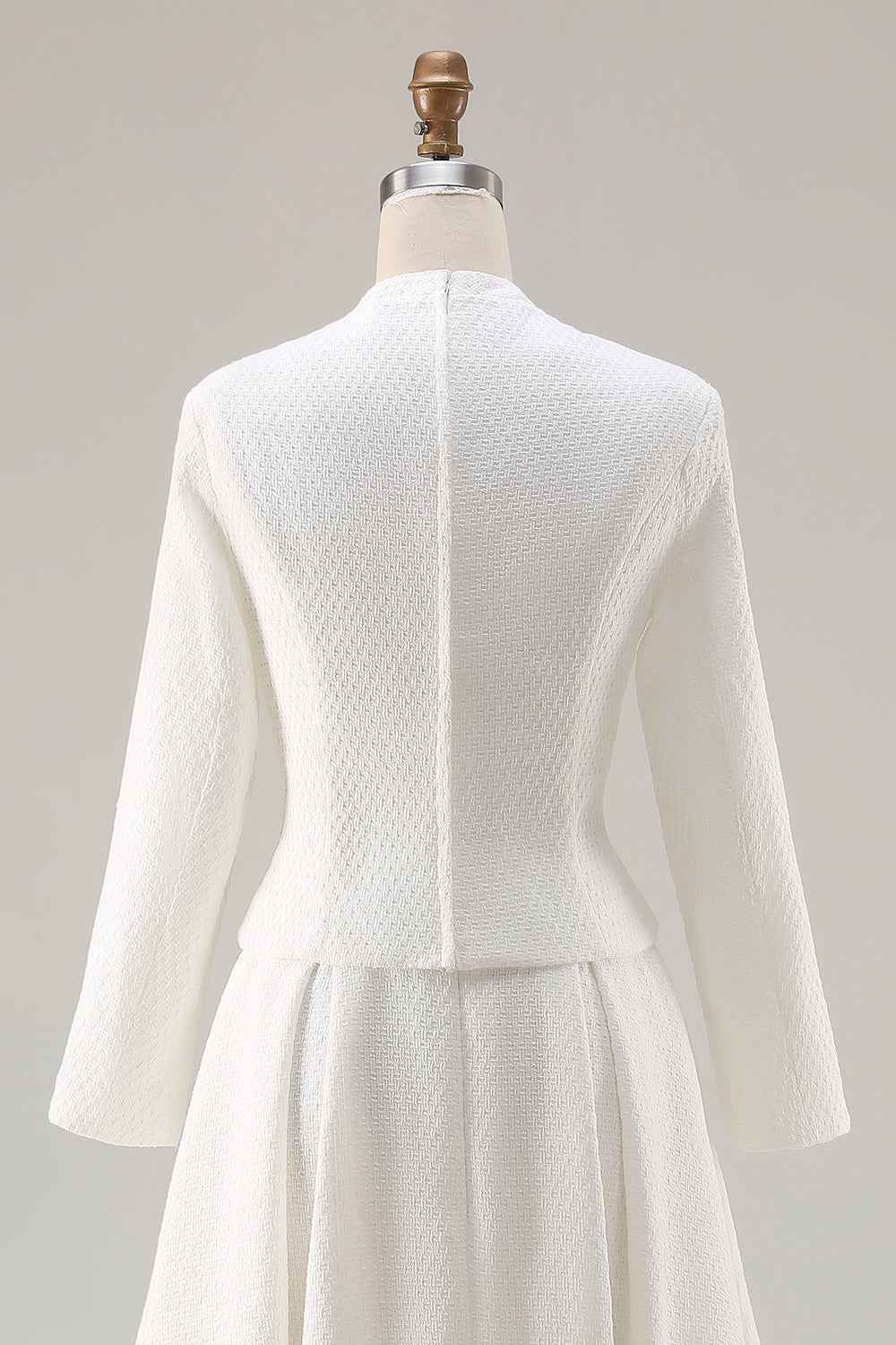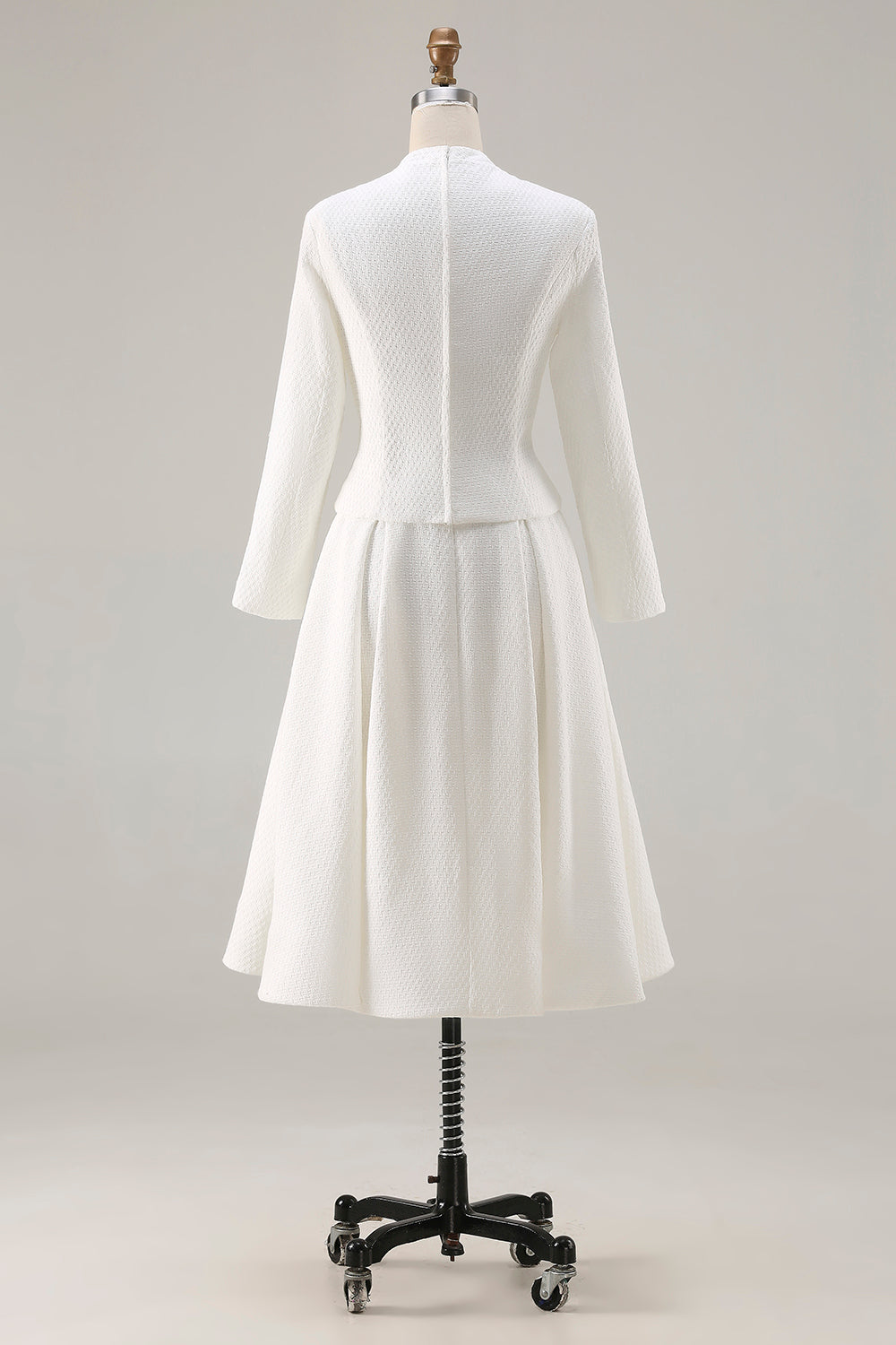 Ivory A Line Round Neck Long Sleeve Midi Work Dress