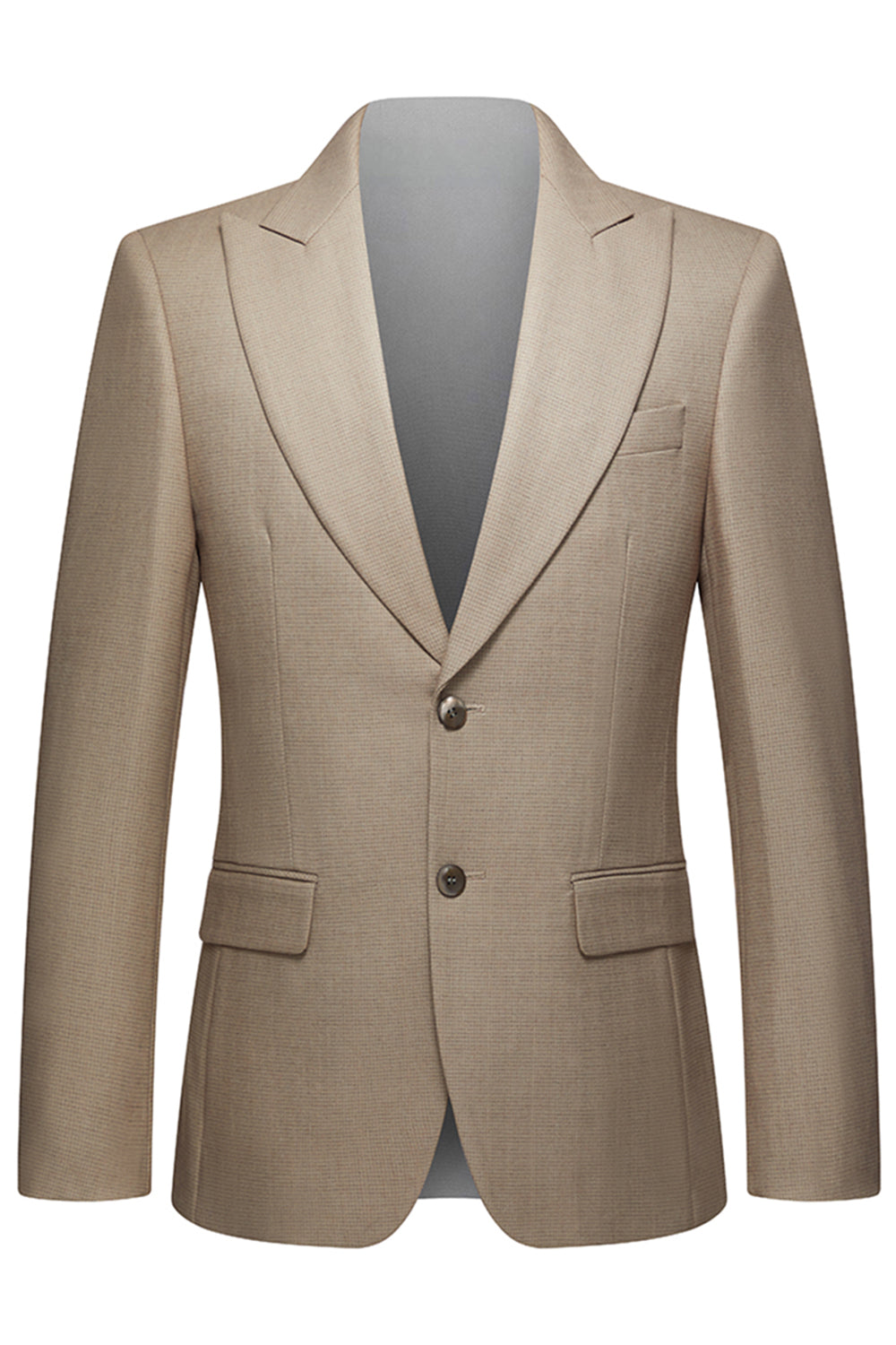 Khaki Coffee Peak Lapel Single Breasted Men's 3 Piece Suits