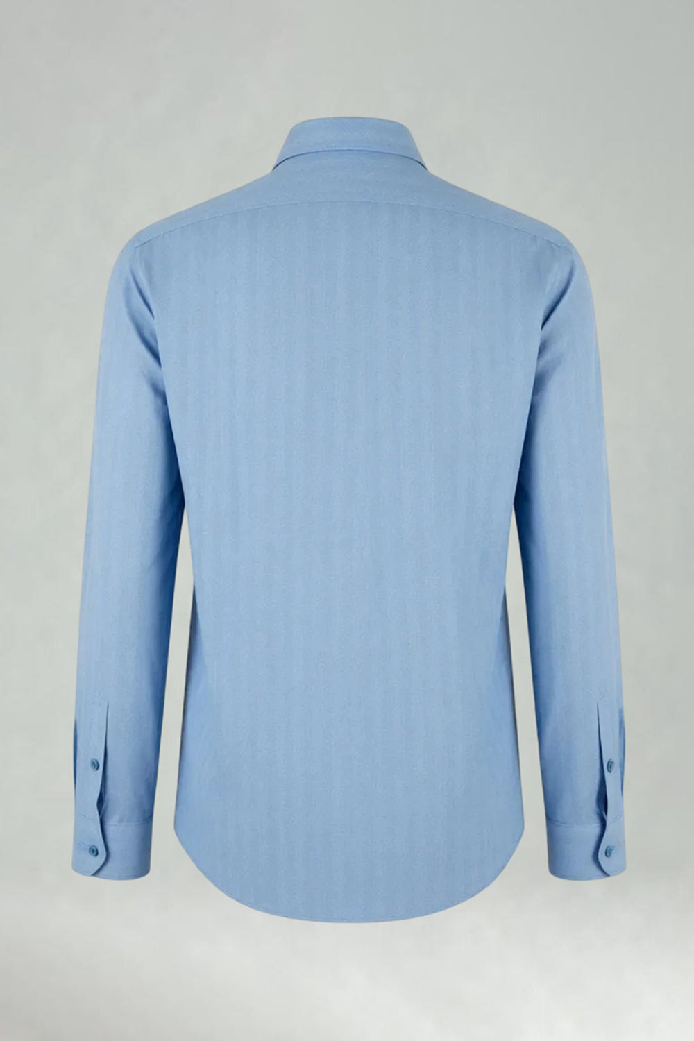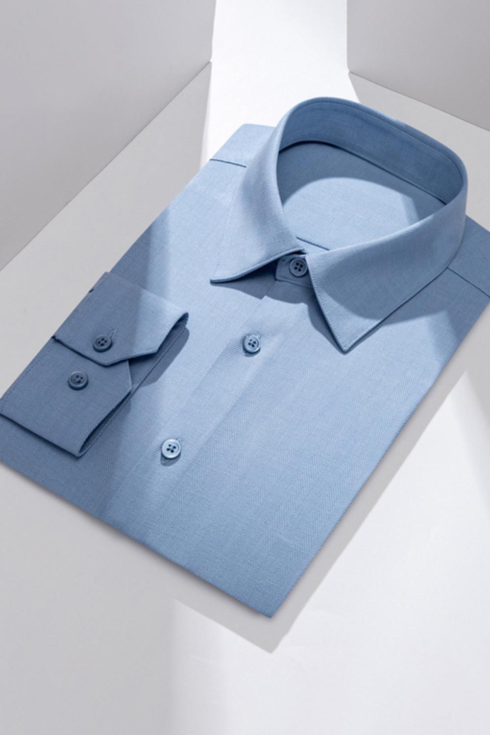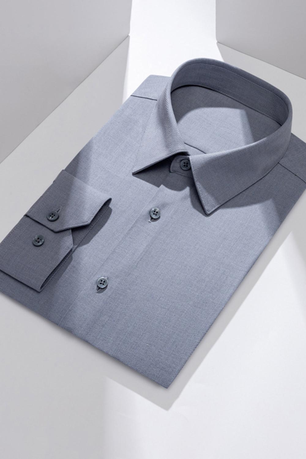 Men's Blue Grey Point Collar Long Sleeves Suits Shirt