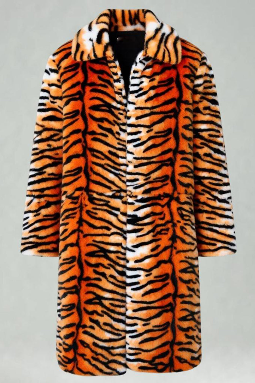 Men's Yellow Open Front Shawl Collar Long Faux Fur Coat