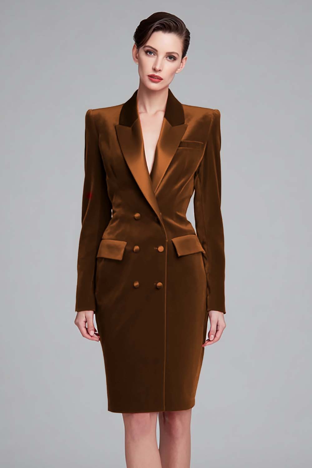 Red Velvet Bodycon Peak Lapel Midi Work Dress