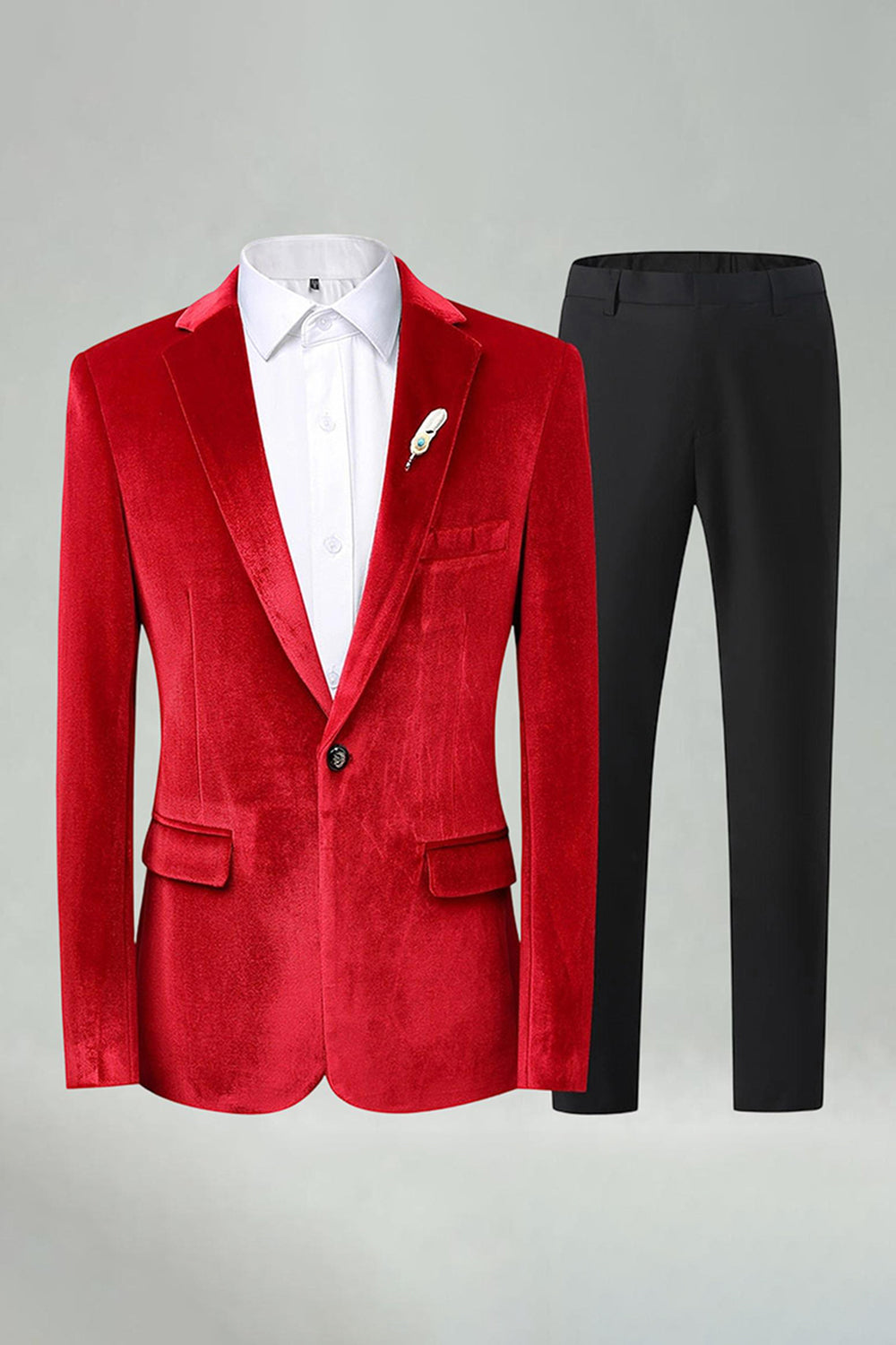 Royal Blue 2 Piece Velvet Notched Lapel Men's Prom Suits