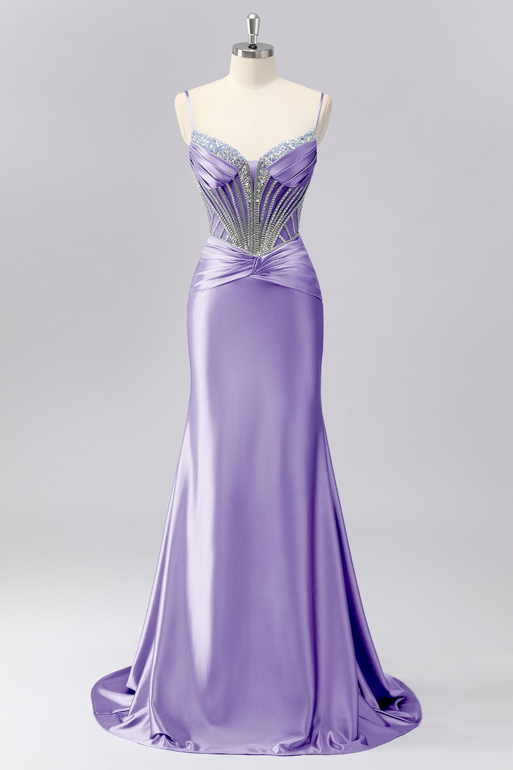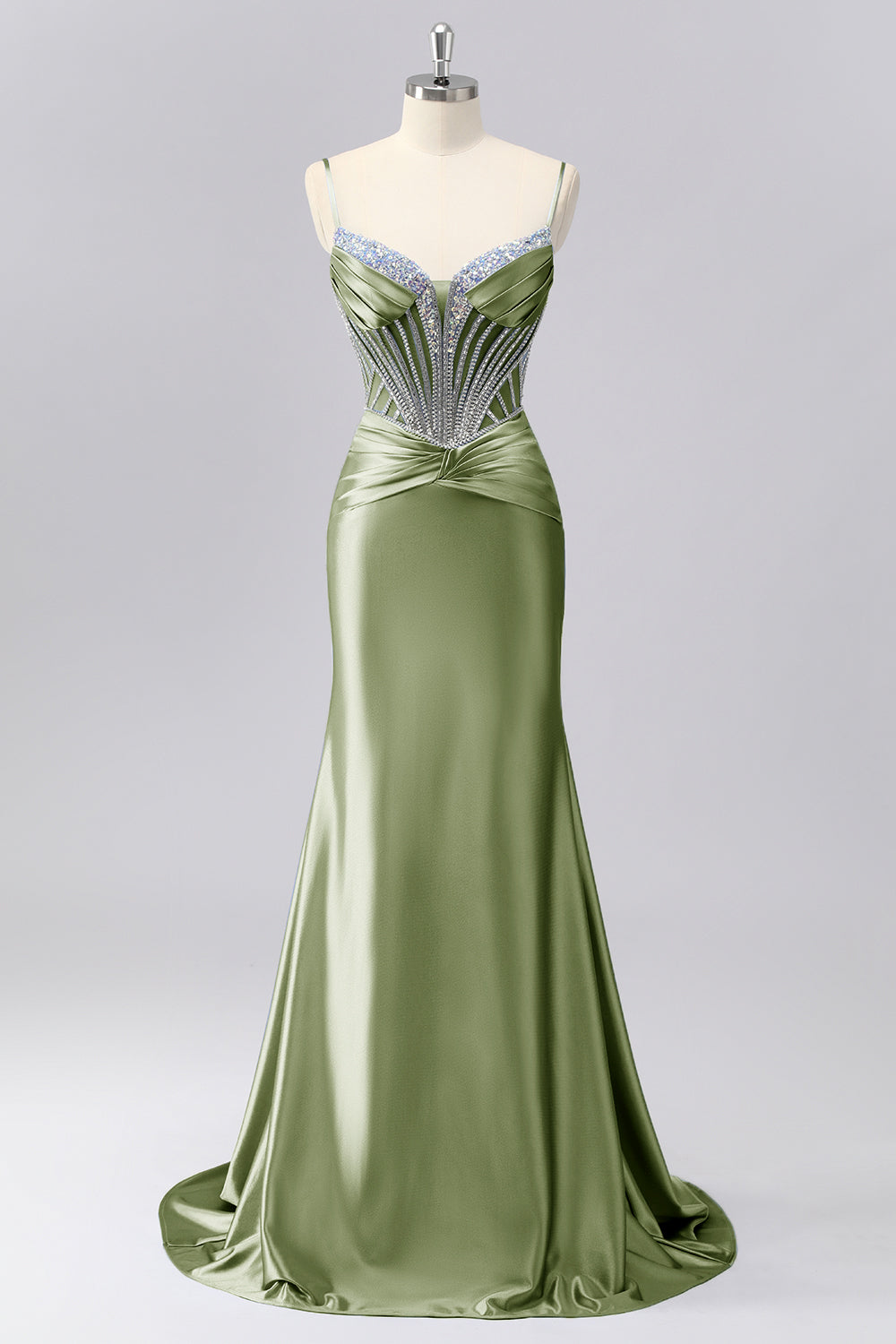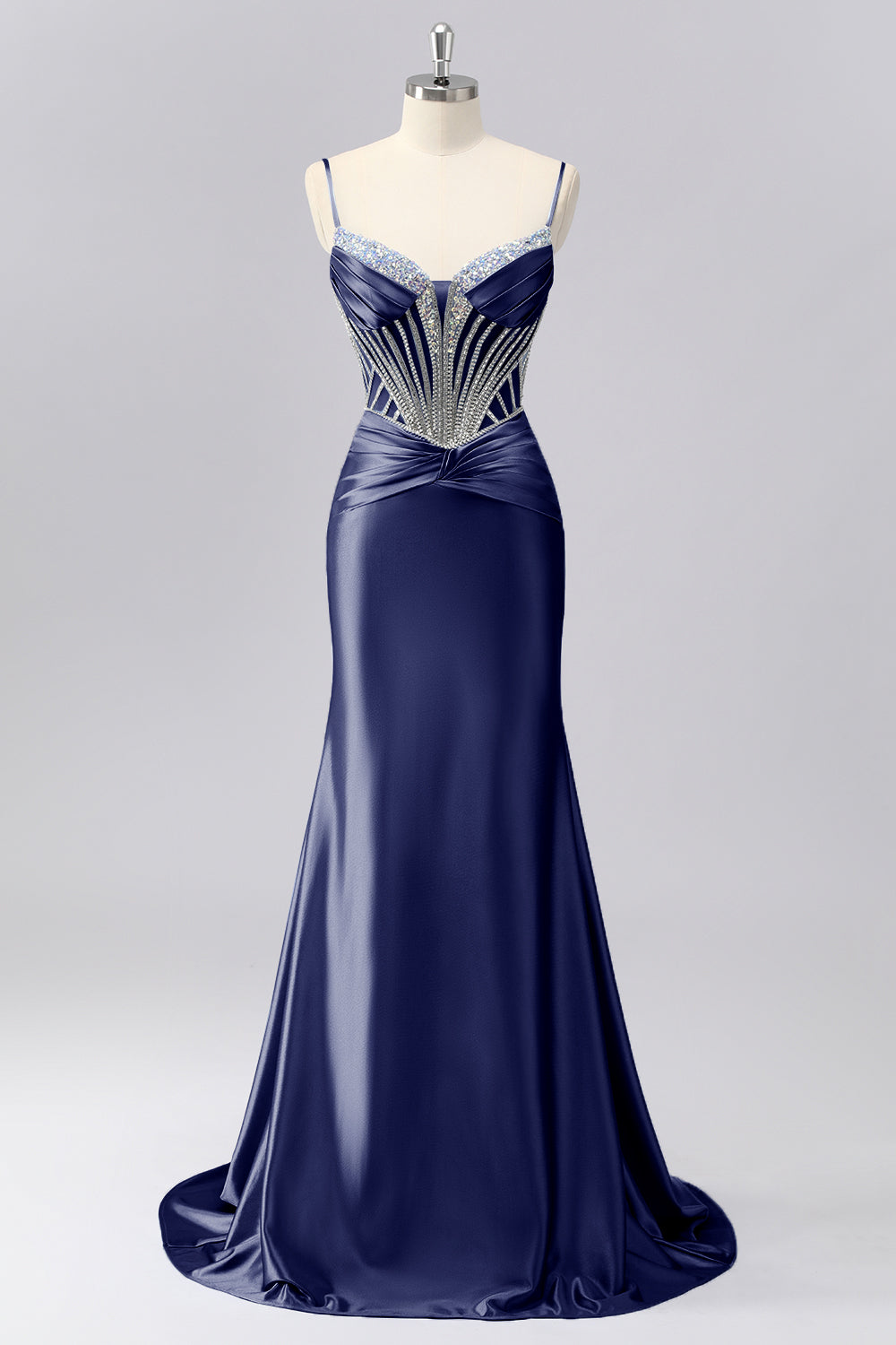 Sparkly Grey Blue Corset Mermaid Satin Long Formal Dress with Sequins