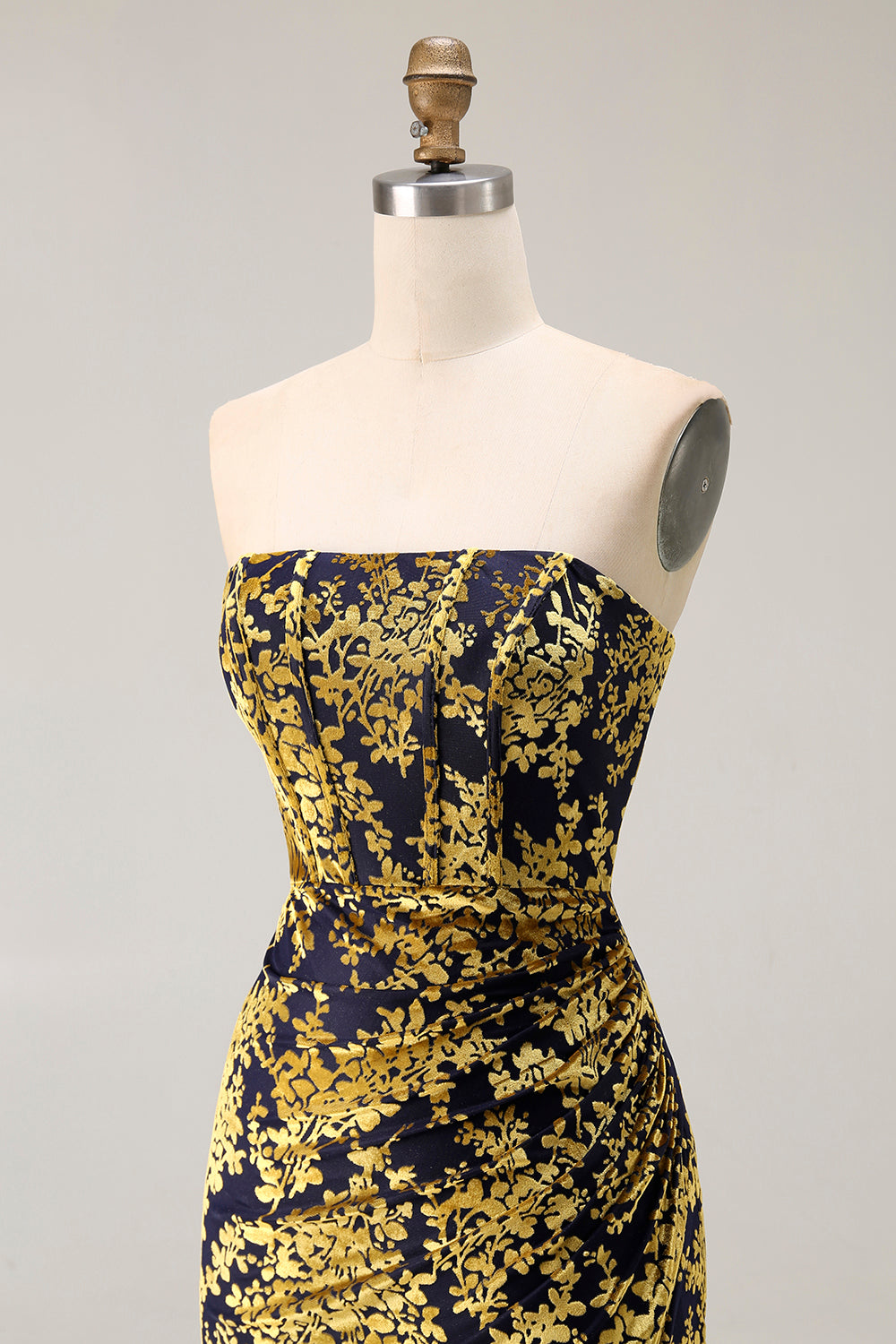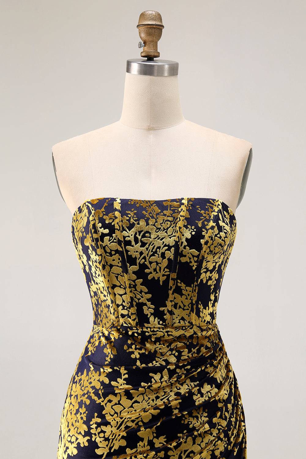 Strapless Peacock Green Corset Burnout Velvet Bridesmaid Dress with Slit