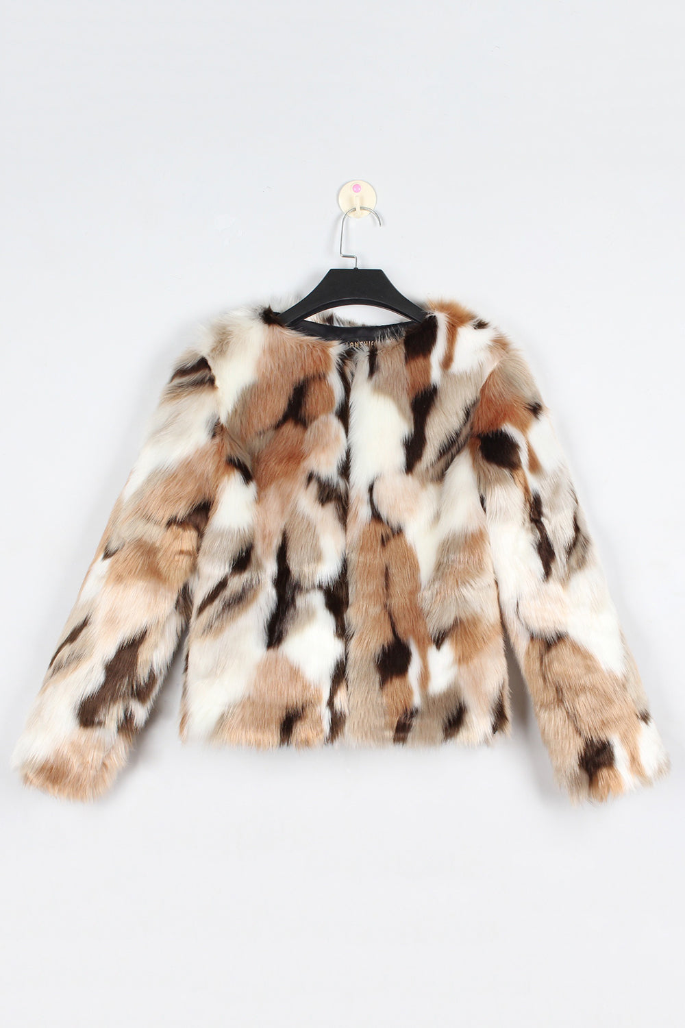 White and Apricot Cardigan Women Faux Fur Coat