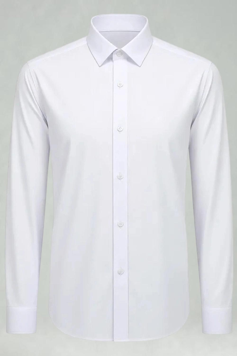 White Classic Solid Point Collar Slim Fit Men's Suits Shirt