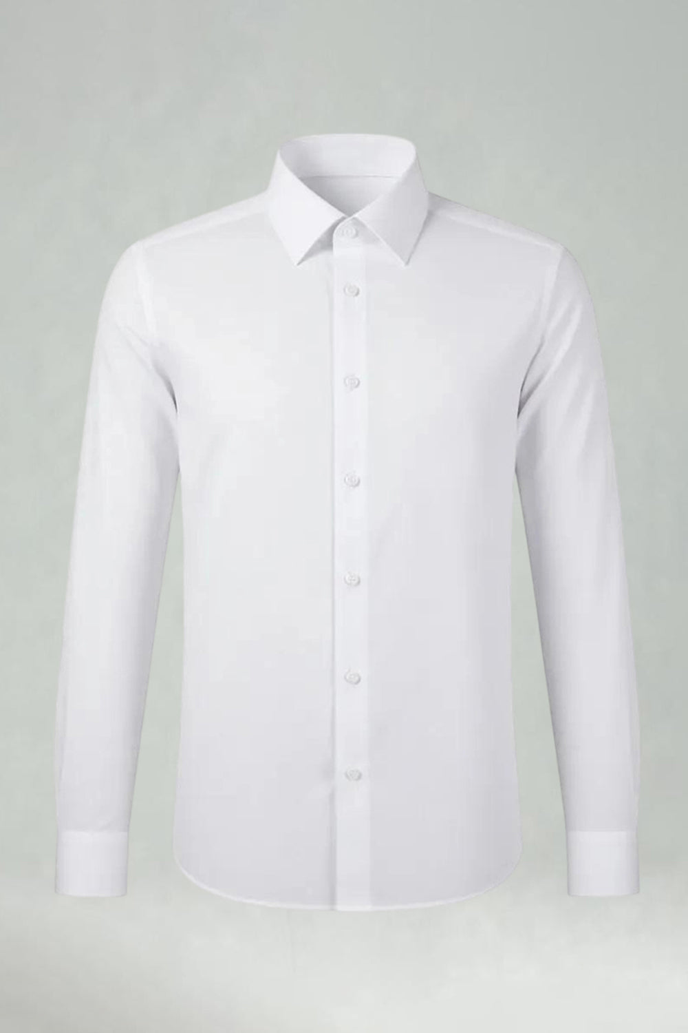 White Solid Classic Long Sleeves Men's Suits Shirt