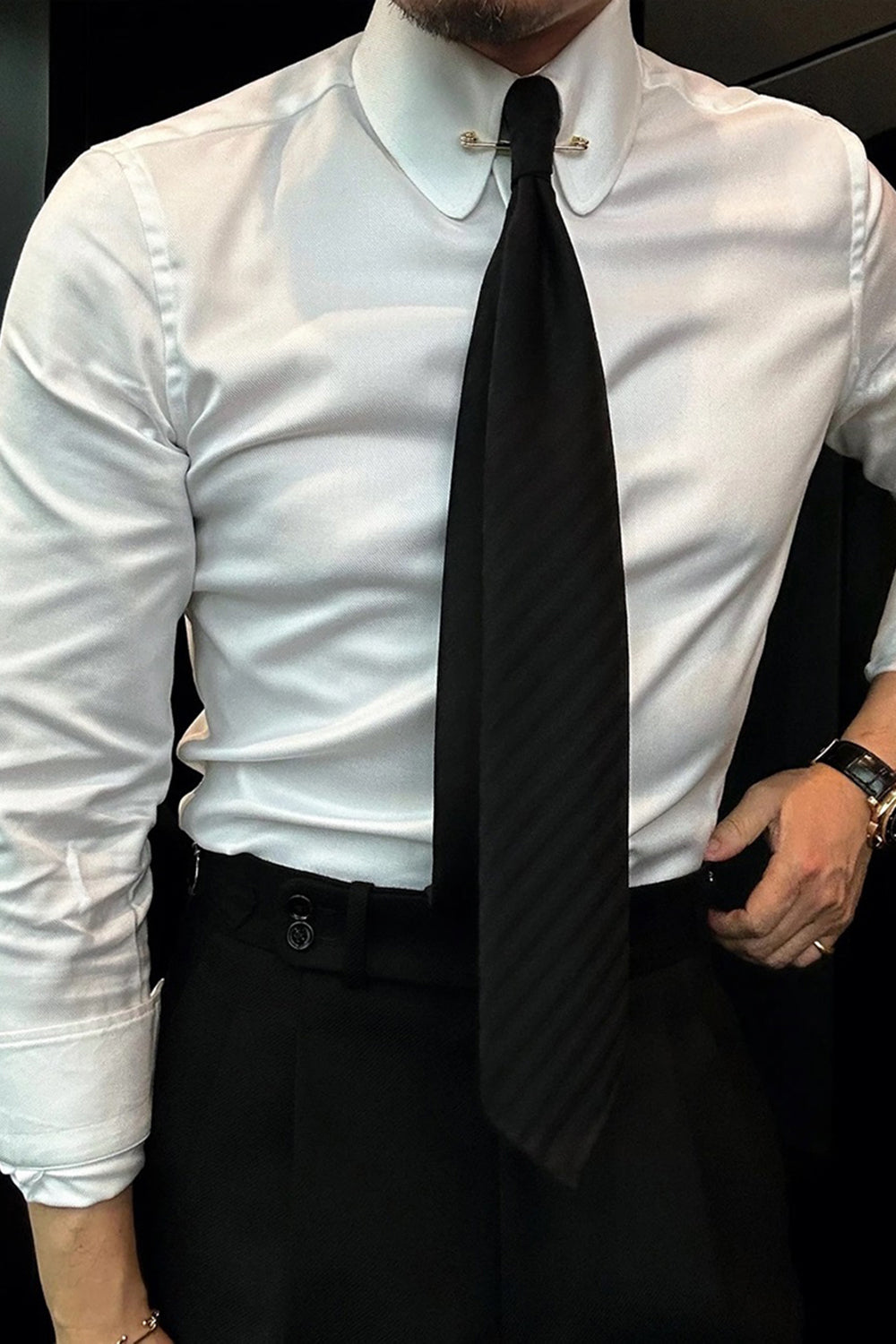 White Solid Long Sleeves Slim Fit Men's Suits Shirt