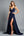 A Line Navy Spaghetti Straps Long Formal Dress with Slit