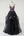 Black A-Line Spaghetti Straps Flowers Ruffles Tulle Long Prom Dress with Slit