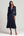 Navy Satin V Neck Ruched Long Sleeves Formal Dress