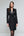 Satin Black Peak Lapel Midi Work Dress with Sleeves