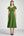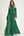 Green A Line Cap Sleeve V-Neck Satin Long Work Dress