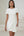 Ivory Satin Bodycon Round Neck Ruched Midi Work Dress