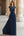 Navy A Line Spaghetti Straps Long Formal Dress with Slit