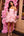 Pink Square Neck A Line Satin Work Dress with Sleeve
