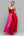 Red and Pink Patchwork V Neck Chiffon A Line Long Wedding Guest Dress with Sleeves
