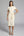 Sparkly Beige Beaded Bodycon Ruched Midi Work Dress with Sash