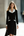 Black and White Satin Sheath Collar Neck Long Work Dress