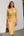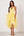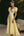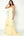 Yellow Small Flower A Line V Neck Pleated Wedding Party Guest Dress with Ruffles