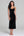Black Velvet V-Neck Bodycon Midi Cocktail Dress with Sleeves