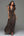 Dark Brown White Dot V-Neck Bodycon Formal Dress with Slit