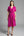 Fuchsia Satin V-Neck Ruched Midi Work Dress with Sleeves