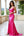 Fuchsia V-Neck Satin Sheath Wedding Guest Dress with Ruffles