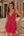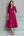 Fuchsia V Neck A Line Satin Midi Work Dress