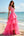 Sparkly Hot Pink Beaded V Neck A Line Tiered Long Formal Dress