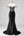 Black Strapless Sparkly Bows Velvet Long Formal Dress With High Slit (Not Gloves)