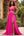 Sparkly Fuchsia Satin A Line V-Neck Long Formal Dress with Slit