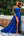 White Blue Flower Mermaid Long Wedding Guest Dress with Slit
