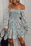 Black Off the Shoulder Printed Long Sleeves Summer Dress