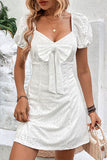 Short Sleeves White Casual Summer Dress With Bow