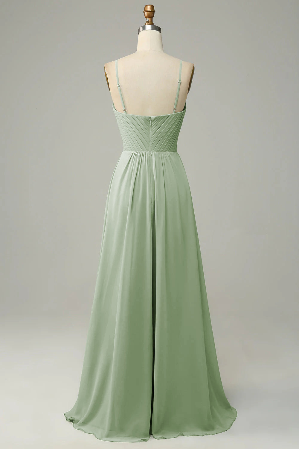 Spaghetti Straps Dusty Sage Sleeveless Bridesmaid Dress