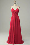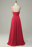 Rust Spaghetti Straps Sleeveless Bridesmaid Dress