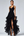 Black Chiffon Tiered Off the Shoulder Long Formal Dress with Slit