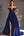 Dusty Blue V Neck Ruffled Long Wedding Guest Dress With Slit