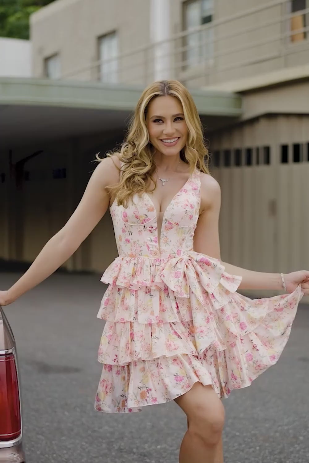 Floral Pink Corset A Line Short Cocktail Dress with Bow